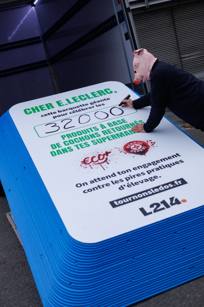 Installée devant le siège de E.Leclerc, la barquette géante n’est pas passée inaperçue. Son format spectaculaire, son message fort et son emplacement stratégique ont permis à l’opération de bénéficier d’une forte visibilité médiatique, notamment dans Le Parisien et sur les réseaux sociaux.