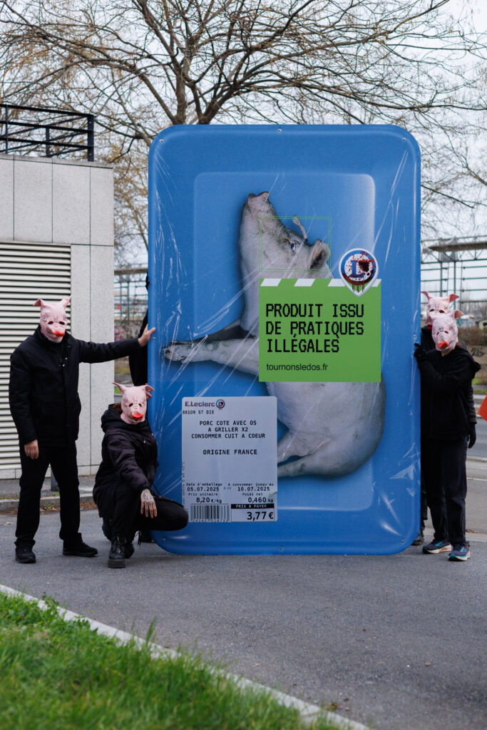 C’est le défi que Virus Com a relevé récemment pour le compte de L214, à l’occasion d’une action coup de poing menée devant le siège de E.Leclerc.